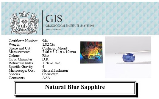 Beautiful 1.82 Ct. Natural Blue Sapphire (AAA+-Mines) sva 2+ Ratti Neelam. Free Horoscope & Free Pundit Ji Astrological Advise / Consultation. Original Natural Lab certified gems by IGI GTL / Birth stones / Large Gem Selection of shree shubh Rashi Ratan Vedic dhan at Gem Mines. May Bhagwan Brahma, Vishnu, Shiv & Universe bless you.
