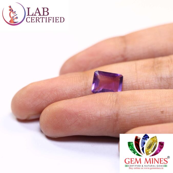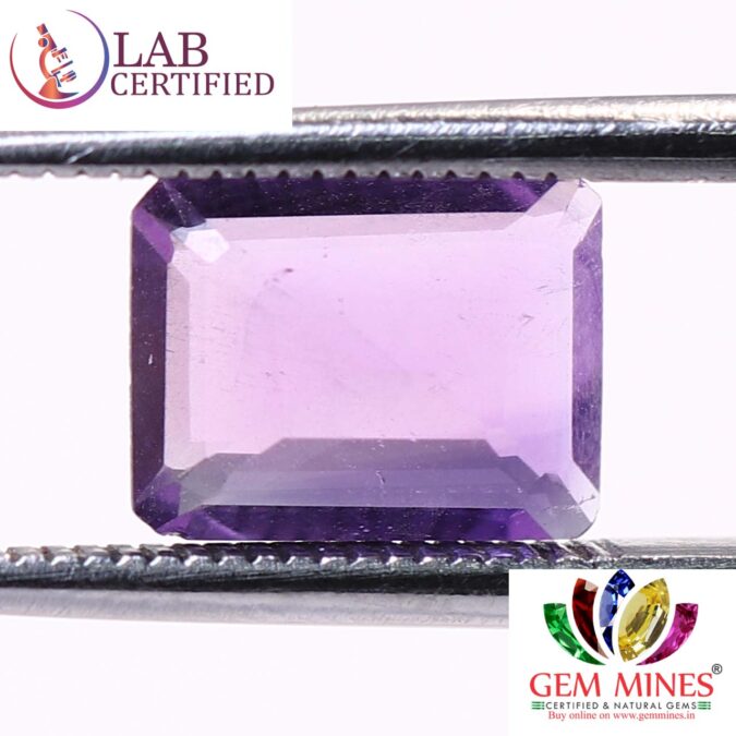 Beautiful 1.7 Ct. Amethyst (Brazil Mines) Sava 1 Ratti Kathela. Free Horoscope & Free Pundit Ji Advise / Consultation. Original Natural Lab certified gems by IGI GTL / Birth stones / Large Gem Selection of shree shubh Rashi Ratan Vedic dhan at Gem Mines. May Bhagwan Brahma, Vishnu, Shiv & Universe bless you.