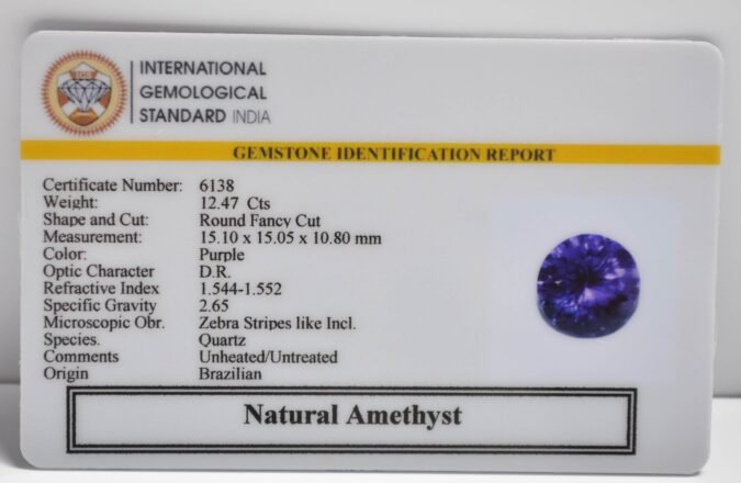 Certified Natural Amethyst 12.47 Ct.(13+ Ratti) in Round Fancy Cut shape