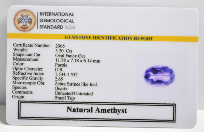 Beautiful 3.2 Cts Natural Amethyst (Top-Mines) sva 3+ Ratti AMETHYST. Free Horoscope & Free Pundit Ji Astrological Advise / Consultation. Original Natural Lab certified gems by IGI GTL / Birth stones / Large Gem Selection of shree shubh Rashi Ratan Vedic dhan at Gem Mines. May Bhagwan Brahma, Vishnu, Shiv & Universe bless you.