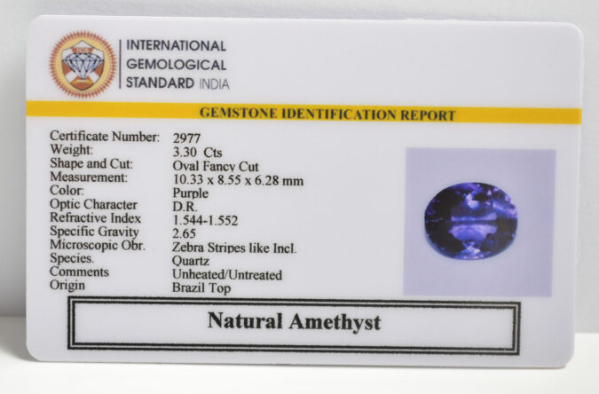 Beautiful 3.3 Cts Natural Amethyst (Top-Mines) sva 3+ Ratti AMETHYST. Free Horoscope & Free Pundit Ji Astrological Advise / Consultation. Original Natural Lab certified gems by IGI GTL / Birth stones / Large Gem Selection of shree shubh Rashi Ratan Vedic dhan at Gem Mines. May Bhagwan Brahma, Vishnu, Shiv & Universe bless you.