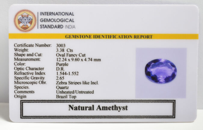 Beautiful 3.38 Cts Natural Amethyst (Top+-Mines) sva 3+ Ratti AMETHYST. Free Horoscope & Free Pundit Ji Astrological Advise / Consultation. Original Natural Lab certified gems by IGI GTL / Birth stones / Large Gem Selection of shree shubh Rashi Ratan Vedic dhan at Gem Mines. May Bhagwan Brahma, Vishnu, Shiv & Universe bless you.