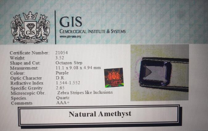 Beautiful 3.52 Ct. Amethyst (Brazil Mines) Sava 3 Ratti Kathela. Free Horoscope & Free Pundit Ji Advise / Consultation. Original Natural Lab certified gems by IGI GTL / Birth stones / Large Gem Selection of shree shubh Rashi Ratan Vedic dhan at Gem Mines. May Bhagwan Brahma, Vishnu, Shiv & Universe bless you.