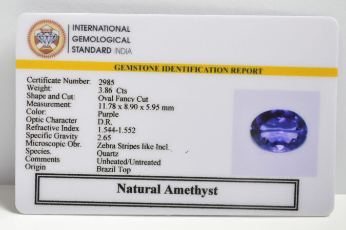 Beautiful 3.86 Cts Natural Amethyst (Top+-Mines) sva 4+ Ratti AMETHYST. Free Horoscope & Free Pundit Ji Astrological Advise / Consultation. Original Natural Lab certified gems by IGI GTL / Birth stones / Large Gem Selection of shree shubh Rashi Ratan Vedic dhan at Gem Mines. May Bhagwan Brahma, Vishnu, Shiv & Universe bless you.