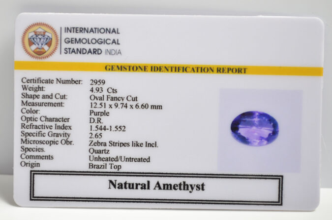 Beautiful 4.93 Cts Natural Amethyst (Top-Mines) sva 5+ Ratti AMETHYST. Free Horoscope & Free Pundit Ji Astrological Advise / Consultation. Original Natural Lab certified gems by IGI GTL / Birth stones / Large Gem Selection of shree shubh Rashi Ratan Vedic dhan at Gem Mines. May Bhagwan Brahma, Vishnu, Shiv & Universe bless you.