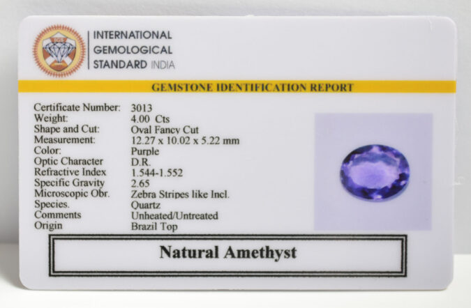 Beautiful 4 Cts Natural Amethyst (Top-Mines) sva 4+ Ratti AMETHYST. Free Horoscope & Free Pundit Ji Astrological Advise / Consultation. Original Natural Lab certified gems by IGI GTL / Birth stones / Large Gem Selection of shree shubh Rashi Ratan Vedic dhan at Gem Mines. May Bhagwan Brahma, Vishnu, Shiv & Universe bless you.