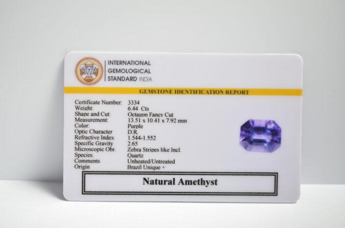 Beautiful 6.44 Cts Natural Amethyst (Unique +-Mines) sva 7+ Ratti AMETHYST. Free Horoscope & Free Pundit Ji Astrological Advise / Consultation. Original Natural Lab certified gems by IGI GTL / Birth stones / Large Gem Selection of shree shubh Rashi Ratan Vedic dhan at Gem Mines. May Bhagwan Brahma, Vishnu, Shiv & Universe bless you.