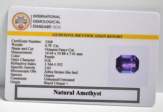 Beautiful 6.79 Cts Natural Amethyst (Top+-Mines) sva 7+ Ratti AMETHYST. Free Horoscope & Free Pundit Ji Astrological Advise / Consultation. Original Natural Lab certified gems by IGI GTL / Birth stones / Large Gem Selection of shree shubh Rashi Ratan Vedic dhan at Gem Mines. May Bhagwan Brahma, Vishnu, Shiv & Universe bless you.