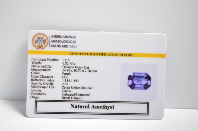 Beautiful 6.82 Cts Natural Amethyst (Top+-Mines) sva 7+ Ratti AMETHYST. Free Horoscope & Free Pundit Ji Astrological Advise / Consultation. Original Natural Lab certified gems by IGI GTL / Birth stones / Large Gem Selection of shree shubh Rashi Ratan Vedic dhan at Gem Mines. May Bhagwan Brahma, Vishnu, Shiv & Universe bless you.