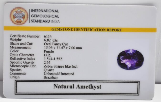 Beautiful 6.82 Cts Natural Amethyst (Unique+-Mines) sva 7+ Ratti AMETHYST. Free Horoscope & Free Pundit Ji Astrological Advise / Consultation. Original Natural Lab certified gems by IGI GTL / Birth stones / Large Gem Selection of shree shubh Rashi Ratan Vedic dhan at Gem Mines. May Bhagwan Brahma, Vishnu, Shiv & Universe bless you.