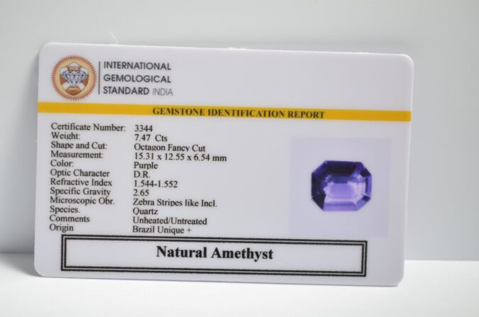 Beautiful 7.47 Cts Natural Amethyst (Top+-Mines) sva 8+ Ratti AMETHYST. Free Horoscope & Free Pundit Ji Astrological Advise / Consultation. Original Natural Lab certified gems by IGI GTL / Birth stones / Large Gem Selection of shree shubh Rashi Ratan Vedic dhan at Gem Mines. May Bhagwan Brahma, Vishnu, Shiv & Universe bless you.
