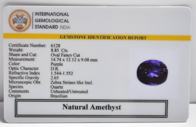 Beautiful 8.85 Cts Natural Amethyst (Top+-Mines) sva 9+ Ratti AMETHYST. Free Horoscope & Free Pundit Ji Astrological Advise / Consultation. Original Natural Lab certified gems by IGI GTL / Birth stones / Large Gem Selection of shree shubh Rashi Ratan Vedic dhan at Gem Mines. May Bhagwan Brahma, Vishnu, Shiv & Universe bless you.