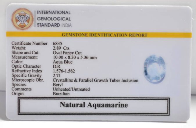 Beautiful 2.89 Cts Natural Aquamarine (AAA+-Mines) sva 3+ Ratti AQUAMARINE. Free Horoscope & Free Pundit Ji Astrological Advise / Consultation. Original Natural Lab certified gems by IGI GTL / Birth stones / Large Gem Selection of shree shubh Rashi Ratan Vedic dhan at Gem Mines. May Bhagwan Brahma, Vishnu, Shiv & Universe bless you.