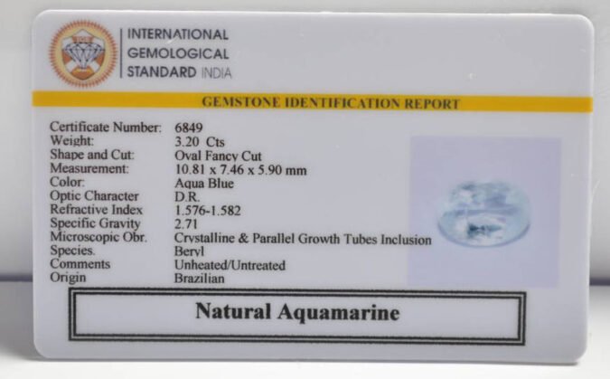 Beautiful 3.2 Cts Natural Aquamarine (AAA+-Mines) sva 3+ Ratti AQUAMARINE. Free Horoscope & Free Pundit Ji Astrological Advise / Consultation. Original Natural Lab certified gems by IGI GTL / Birth stones / Large Gem Selection of shree shubh Rashi Ratan Vedic dhan at Gem Mines. May Bhagwan Brahma, Vishnu, Shiv & Universe bless you.