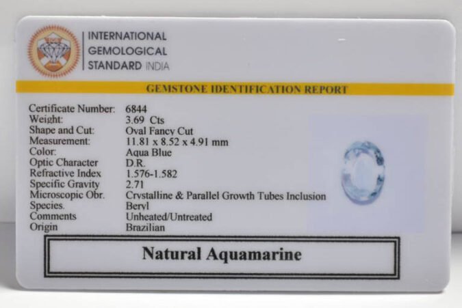 Beautiful 3.69 Cts Natural Aquamarine (AAA+-Mines) sva 4+ Ratti AQUAMARINE. Free Horoscope & Free Pundit Ji Astrological Advise / Consultation. Original Natural Lab certified gems by IGI GTL / Birth stones / Large Gem Selection of shree shubh Rashi Ratan Vedic dhan at Gem Mines. May Bhagwan Brahma, Vishnu, Shiv & Universe bless you.