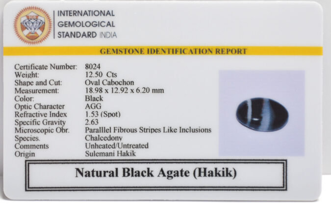 Certified Natural Black Agate (Hakik) 12.5 Ct.(13+ Ratti) in Oval Cabochon shape