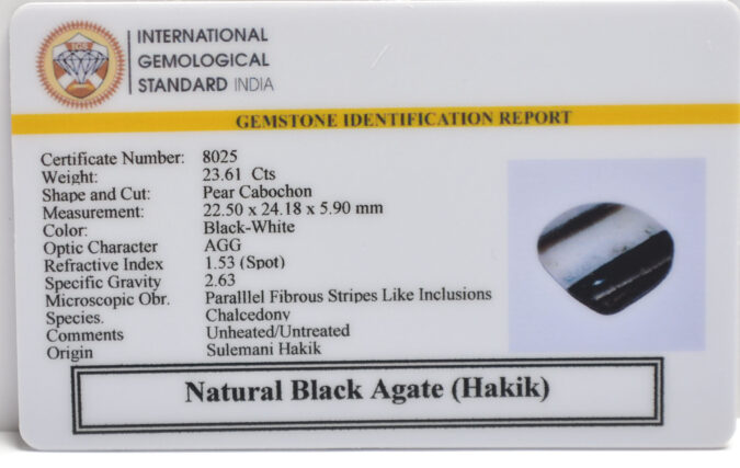 Certified Natural Black Agate (Hakik) 23.61 Ct.(26+ Ratti) in Pear Cabochon shape