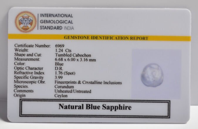 Certified Natural Blue Sapphire 1.24 Ct.(1+ Ratti) in Tumbled Cabochon shape