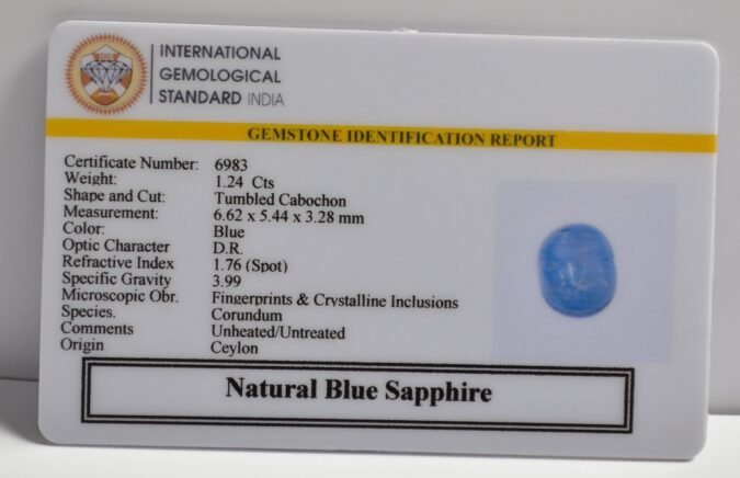 Beautiful 1.24 Cts Natural Blue Sapphire (Very Good-Mines) sva 1+ Ratti BLUE SAPPHIRE. Free Horoscope & Free Pundit Ji Astrological Advise / Consultation. Original Natural Lab certified gems by IGI GTL / Birth stones / Large Gem Selection of shree shubh Rashi Ratan Vedic dhan at Gem Mines. May Bhagwan Brahma, Vishnu, Shiv & Universe bless you.