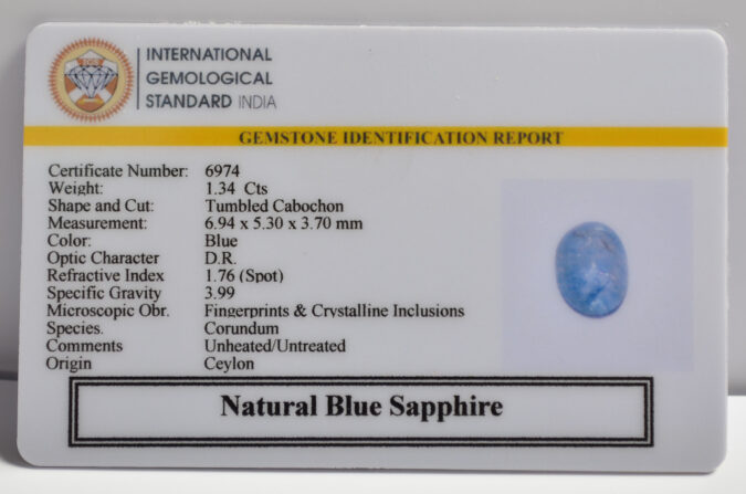 Beautiful 1.34 Cts Natural Blue Sapphire (Very Good-Mines) sva 1+ Ratti BLUE SAPPHIRE. Free Horoscope & Free Pundit Ji Astrological Advise / Consultation. Original Natural Lab certified gems by IGI GTL / Birth stones / Large Gem Selection of shree shubh Rashi Ratan Vedic dhan at Gem Mines. May Bhagwan Brahma, Vishnu, Shiv & Universe bless you.
