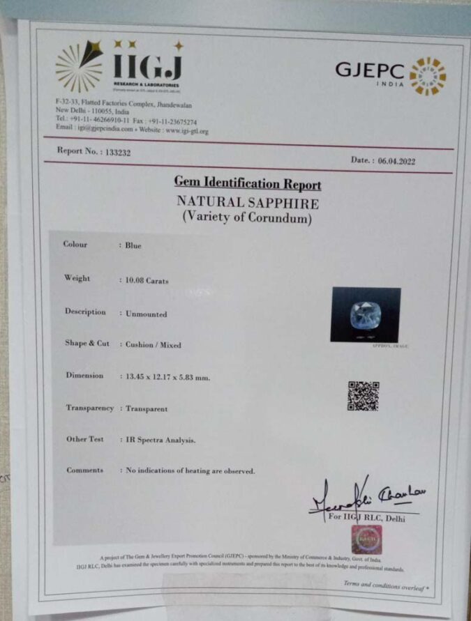 Beautiful 10.08 Ct. Blue Sapphire (Ceylon Mines) Sava 11 Ratti Neelam. Free Horoscope & Free Pundit Ji Advise / Consultation. Original Natural Lab certified gems by IGI GTL / Birth stones / Large Gem Selection of shree shubh Rashi Ratan Vedic dhan at Gem Mines. May Bhagwan Brahma, Vishnu, Shiv & Universe bless you.