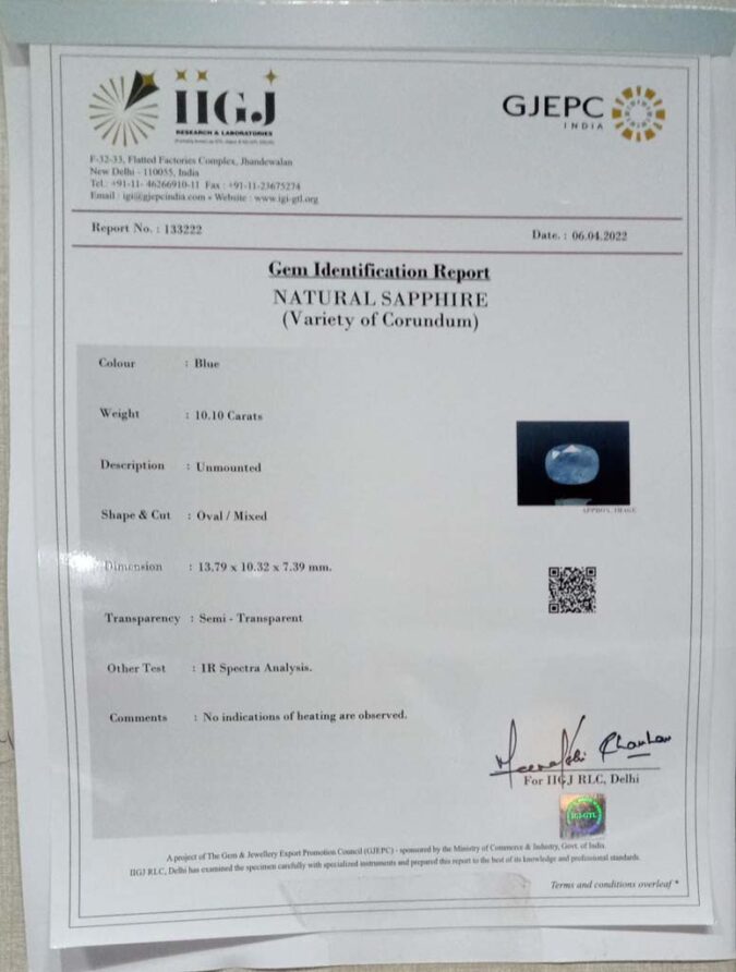 Beautiful 10.1 Ct. Blue Sapphire (Ceylon Mines) Sava 11 Ratti Neelam. Free Horoscope & Free Pundit Ji Advise / Consultation. Original Natural Lab certified gems by IGI GTL / Birth stones / Large Gem Selection of shree shubh Rashi Ratan Vedic dhan at Gem Mines. May Bhagwan Brahma, Vishnu, Shiv & Universe bless you.