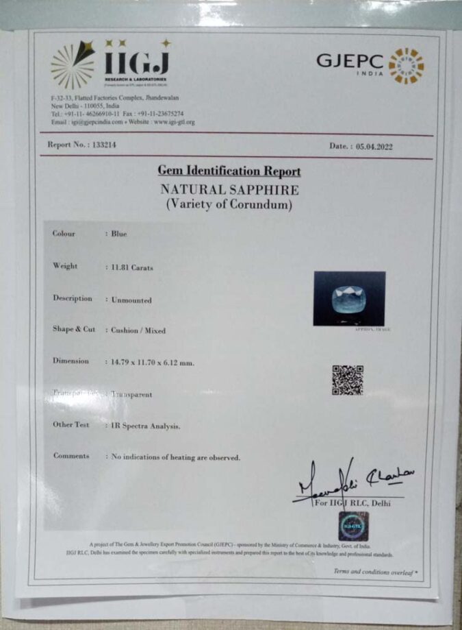 Beautiful 11.81 Ct. Blue Sapphire (Ceylon Mines) Sava 13 Ratti Neelam. Free Horoscope & Free Pundit Ji Advise / Consultation. Original Natural Lab certified gems by IGI GTL / Birth stones / Large Gem Selection of shree shubh Rashi Ratan Vedic dhan at Gem Mines. May Bhagwan Brahma, Vishnu, Shiv & Universe bless you.