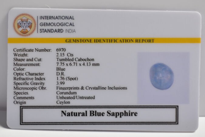 Beautiful 2.15 Cts Natural Blue Sapphire (Very Good-Mines) sva 2+ Ratti BLUE SAPPHIRE. Free Horoscope & Free Pundit Ji Astrological Advise / Consultation. Original Natural Lab certified gems by IGI GTL / Birth stones / Large Gem Selection of shree shubh Rashi Ratan Vedic dhan at Gem Mines. May Bhagwan Brahma, Vishnu, Shiv & Universe bless you.