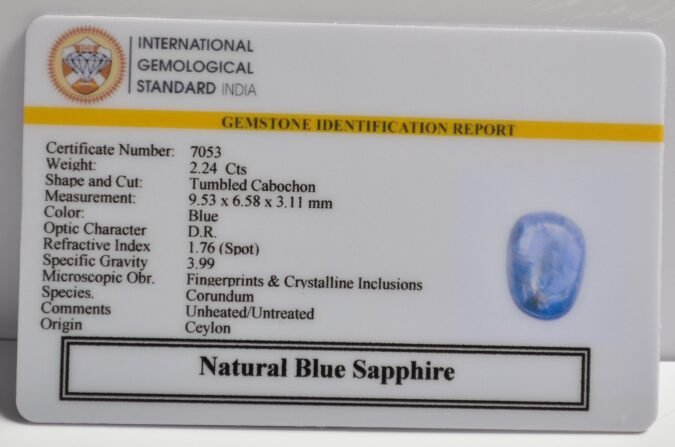 Beautiful 2.24 Cts Natural Blue Sapphire (AAA-Mines) sva 2+ Ratti BLUE SAPPHIRE. Free Horoscope & Free Pundit Ji Astrological Advise / Consultation. Original Natural Lab certified gems by IGI GTL / Birth stones / Large Gem Selection of shree shubh Rashi Ratan Vedic dhan at Gem Mines. May Bhagwan Brahma, Vishnu, Shiv & Universe bless you.