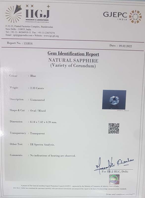 Beautiful 2.33 Ct. Blue Sapphire (Ceylon(Sri-Lanka) Mines) Sava 2 Ratti Neelam. Free Horoscope & Free Pundit Ji Advise / Consultation. Original Natural Lab certified gems by IGI GTL / Birth stones / Large Gem Selection of shree shubh Rashi Ratan Vedic dhan at Gem Mines. May Bhagwan Brahma, Vishnu, Shiv & Universe bless you.