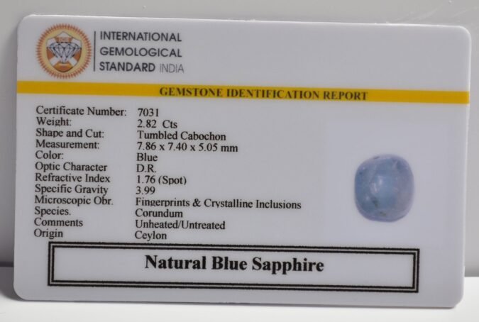 Beautiful 2.82 Cts Natural Blue Sapphire (Very Good-Mines) sva 3+ Ratti BLUE SAPPHIRE. Free Horoscope & Free Pundit Ji Astrological Advise / Consultation. Original Natural Lab certified gems by IGI GTL / Birth stones / Large Gem Selection of shree shubh Rashi Ratan Vedic dhan at Gem Mines. May Bhagwan Brahma, Vishnu, Shiv & Universe bless you.
