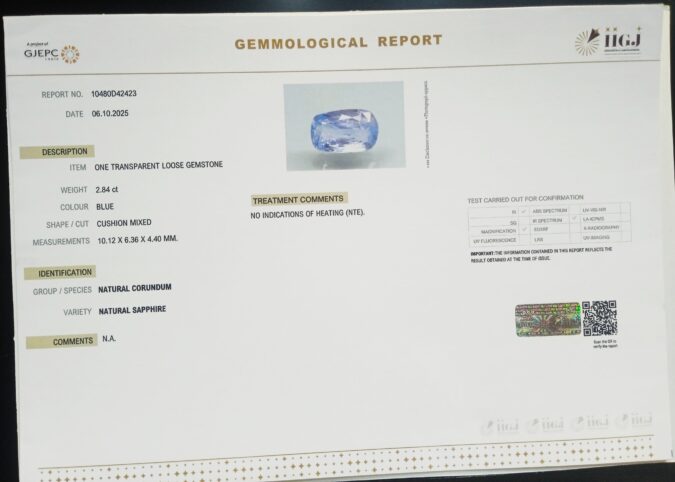 Beautiful 2.84 Cts NATURAL SAPPHIRE (AAA-Mines) sva 3+ Ratti BLUE SAPPHIRE. Free Horoscope & Free Pundit Ji Astrological Advise / Consultation. Original Natural Lab certified gems by IGI GTL / Birth stones / Large Gem Selection of shree shubh Rashi Ratan Vedic dhan at Gem Mines. May Bhagwan Brahma, Vishnu, Shiv & Universe bless you.