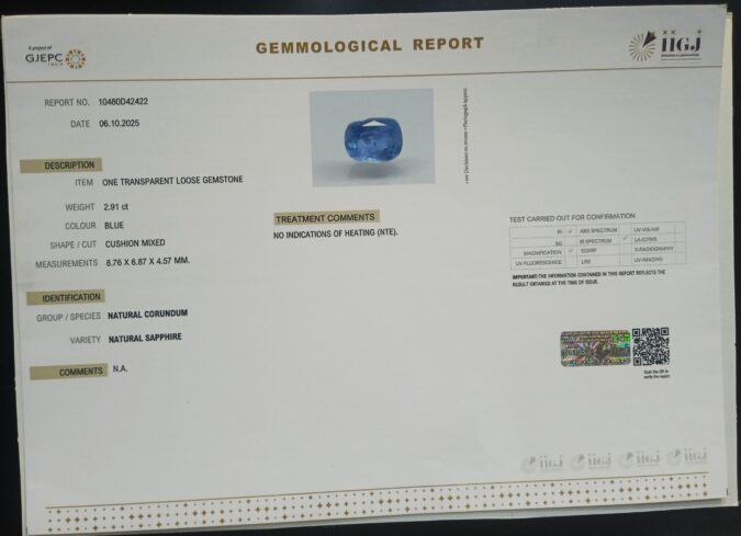 Beautiful 2.91 Cts NATURAL SAPPHIRE (AAA-Mines) sva 3+ Ratti BLUE SAPPHIRE. Free Horoscope & Free Pundit Ji Astrological Advise / Consultation. Original Natural Lab certified gems by IGI GTL / Birth stones / Large Gem Selection of shree shubh Rashi Ratan Vedic dhan at Gem Mines. May Bhagwan Brahma, Vishnu, Shiv & Universe bless you.