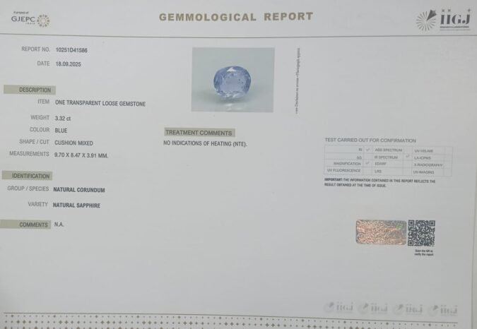 Certified Natural Blue Sapphire 3.32 Ct.(3+ Ratti) in CUSHION MIXED shape
