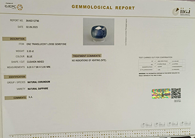 Beautiful 3.33 Ct. Natural Blue Sapphire (AAA-Mines) sva 3+ Ratti Neelam. Free Horoscope & Free Pundit Ji Astrological Advise / Consultation. Original Natural Lab certified gems by IGI GTL / Birth stones / Large Gem Selection of shree shubh Rashi Ratan Vedic dhan at Gem Mines. May Bhagwan Brahma, Vishnu, Shiv & Universe bless you.