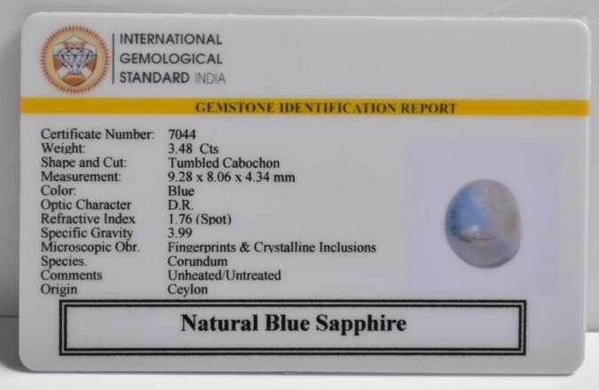 Certified Natural Blue Sapphire 3.48 Ct.(3+ Ratti) in Tumbled Cabochon shape
