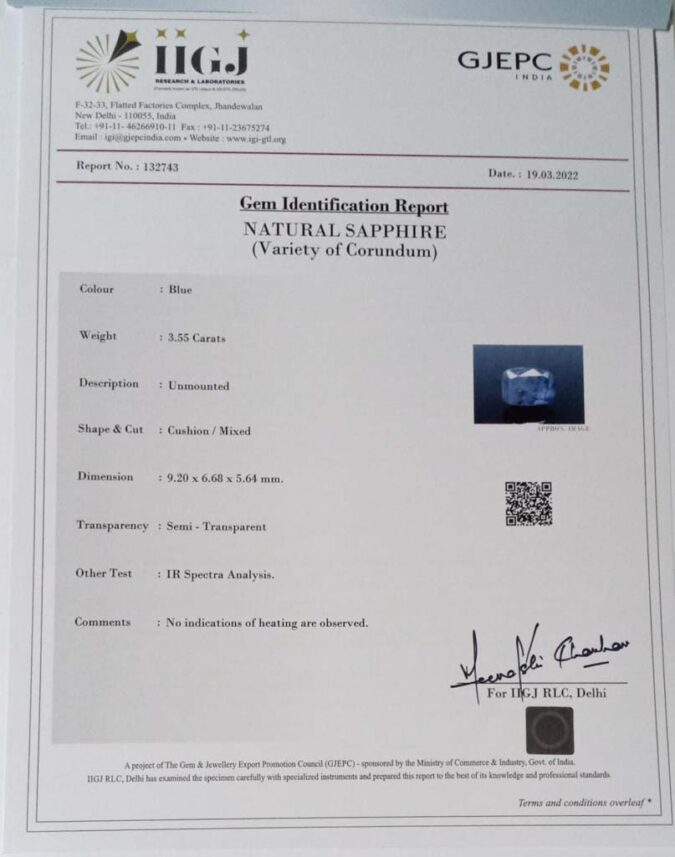 3.55Beautiful 3.55 Ct. Blue Sapphire (Ceylon (Sri Lanka) Mines) Sava 3 Ratti Neelam. Free Horoscope & Free Pundit Ji Advise / Consultation. Original Natural Lab certified gems by IGI GTL / Birth stones / Large Gem Selection of shree shubh Rashi Ratan Vedic dhan at Gem Mines. May Bhagwan Brahma, Vishnu, Shiv & Universe bless you.