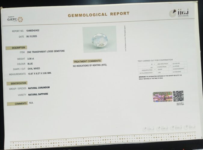 Beautiful 3.56 Cts NATURAL SAPPHIRE (Very Good-Mines) sva 3+ Ratti BLUE SAPPHIRE. Free Horoscope & Free Pundit Ji Astrological Advise / Consultation. Original Natural Lab certified gems by IGI GTL / Birth stones / Large Gem Selection of shree shubh Rashi Ratan Vedic dhan at Gem Mines. May Bhagwan Brahma, Vishnu, Shiv & Universe bless you.