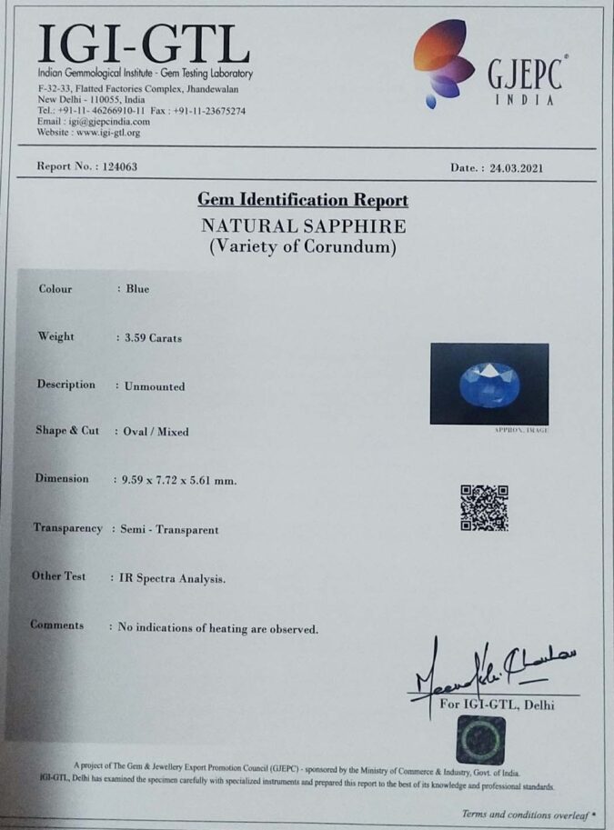 Beautiful 3.59 Ct. Blue Sapphire (Burma Mines) Sava 3 Ratti Neelam. Free Horoscope & Free Pundit Ji Advise / Consultation. Original Natural Lab certified gems by IGI GTL / Birth stones / Large Gem Selection of shree shubh Rashi Ratan Vedic dhan at Gem Mines. May Bhagwan Brahma, Vishnu, Shiv & Universe bless you.