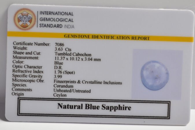 Certified Natural Blue Sapphire 3.63 Ct.(4+ Ratti) in Tumbled Cabochon shape