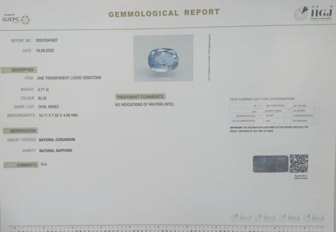 Beautiful 3.77 Cts Natural Blue Sapphire (Top++-Mines) sva 4+ Ratti BLUE SAPPHIRE. Free Horoscope & Free Pundit Ji Astrological Advise / Consultation. Original Natural Lab certified gems by IGI GTL / Birth stones / Large Gem Selection of shree shubh Rashi Ratan Vedic dhan at Gem Mines. May Bhagwan Brahma, Vishnu, Shiv & Universe bless you.