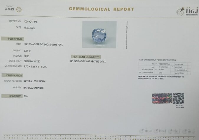 Beautiful 3.97 Cts Natural Blue Sapphire (Top++-Mines) sva 4+ Ratti BLUE SAPPHIRE. Free Horoscope & Free Pundit Ji Astrological Advise / Consultation. Original Natural Lab certified gems by IGI GTL / Birth stones / Large Gem Selection of shree shubh Rashi Ratan Vedic dhan at Gem Mines. May Bhagwan Brahma, Vishnu, Shiv & Universe bless you.