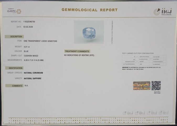 Beautiful 4.01 Cts Natural Blue Sapphire (Top-Mines) sva 4+ Ratti BLUE SAPPHIRE. Free Horoscope & Free Pundit Ji Astrological Advise / Consultation. Original Natural Lab certified gems by IGI GTL / Birth stones / Large Gem Selection of shree shubh Rashi Ratan Vedic dhan at Gem Mines. May Bhagwan Brahma, Vishnu, Shiv & Universe bless you.