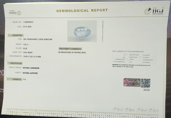 Beautiful 4.02 Cts Natural Blue Sapphire (AAA+-Mines) sva 4+ Ratti BLUE SAPPHIRE. Free Horoscope & Free Pundit Ji Astrological Advise / Consultation. Original Natural Lab certified gems by IGI GTL / Birth stones / Large Gem Selection of shree shubh Rashi Ratan Vedic dhan at Gem Mines. May Bhagwan Brahma, Vishnu, Shiv & Universe bless you.