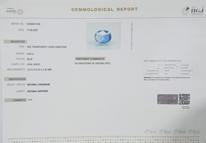 Beautiful 4.04 Cts Natural Blue Sapphire (AAA+-Mines) sva 4+ Ratti BLUE SAPPHIRE. Free Horoscope & Free Pundit Ji Astrological Advise / Consultation. Original Natural Lab certified gems by IGI GTL / Birth stones / Large Gem Selection of shree shubh Rashi Ratan Vedic dhan at Gem Mines. May Bhagwan Brahma, Vishnu, Shiv & Universe bless you.