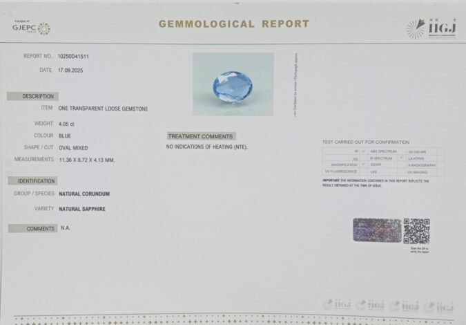 BLUE SAPPHIRE 4.05 Ct.