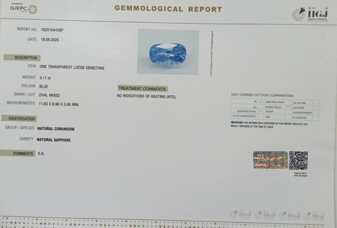 Beautiful 4.11 Cts Natural Blue Sapphire (Top++-Mines) sva 4+ Ratti BLUE SAPPHIRE. Free Horoscope & Free Pundit Ji Astrological Advise / Consultation. Original Natural Lab certified gems by IGI GTL / Birth stones / Large Gem Selection of shree shubh Rashi Ratan Vedic dhan at Gem Mines. May Bhagwan Brahma, Vishnu, Shiv & Universe bless you.