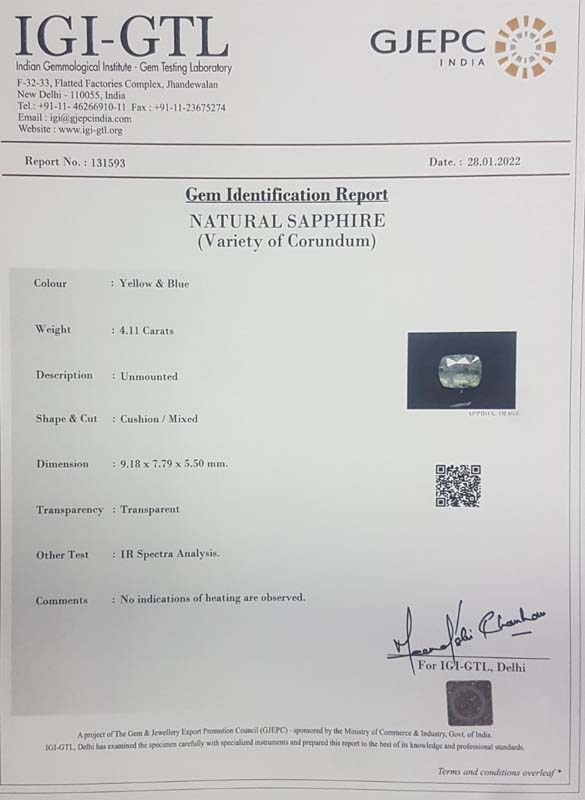 Beautiful 4.11 Ct. Blue Sapphire (Ceylon Mines) Sava 4 Ratti Neelam. Free Horoscope & Free Pundit Ji Advise / Consultation. Original Natural Lab certified gems by IGI GTL / Birth stones / Large Gem Selection of shree shubh Rashi Ratan Vedic dhan at Gem Mines. May Bhagwan Brahma, Vishnu, Shiv & Universe bless you.