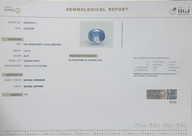 Beautiful 4.13 Cts Natural Blue Sapphire (Top++-Mines) sva 4+ Ratti BLUE SAPPHIRE. Free Horoscope & Free Pundit Ji Astrological Advise / Consultation. Original Natural Lab certified gems by IGI GTL / Birth stones / Large Gem Selection of shree shubh Rashi Ratan Vedic dhan at Gem Mines. May Bhagwan Brahma, Vishnu, Shiv & Universe bless you.
