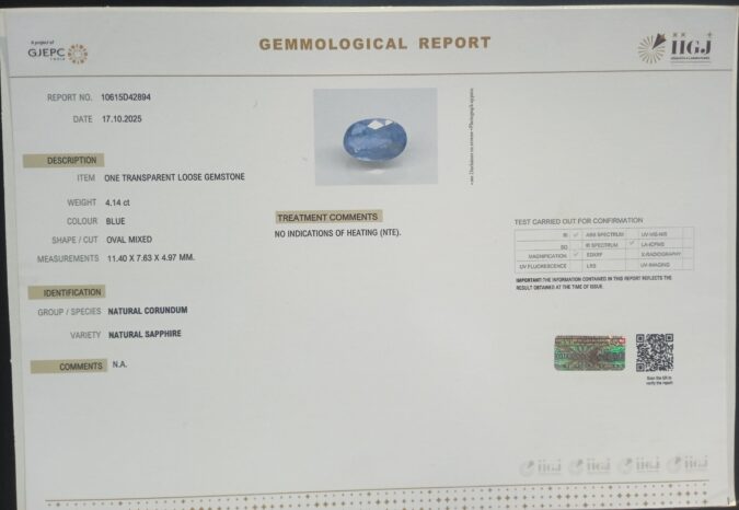 Beautiful 4.14 Cts NATURAL SAPPHIRE (Top+-Mines) sva 4+ Ratti BLUE SAPPHIRE. Free Horoscope & Free Pundit Ji Astrological Advise / Consultation. Original Natural Lab certified gems by IGI GTL / Birth stones / Large Gem Selection of shree shubh Rashi Ratan Vedic dhan at Gem Mines. May Bhagwan Brahma, Vishnu, Shiv & Universe bless you.
